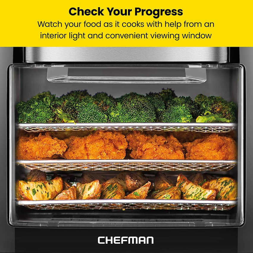 • Monitor cooking progress: The interior lights and extra-large air fryer oven window allow you to check your food's cooking progress.