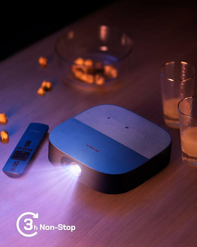 Enjoy portable big screen entertainment with the Nebula Vega. With Full HD clarity, 500 lumens brightness, it also boasts dual stereo speakers and Android TV apps. It keeps going for up to 3 hours of entertainment with a rechargeable battery, and features Keystone correction and Digital Zoom for precise projection.