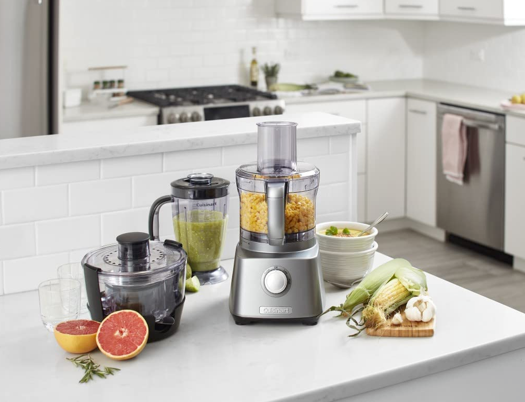 • OPTIONS: The 8-Cup Food Processor can mix, chop, puree, shred and more – The 40-oz. Blender covers the full range of blending tasks from smoothie to pureed soups – The Juice Extractor effortlessly turns whole fruits and vegetables into delicious juice