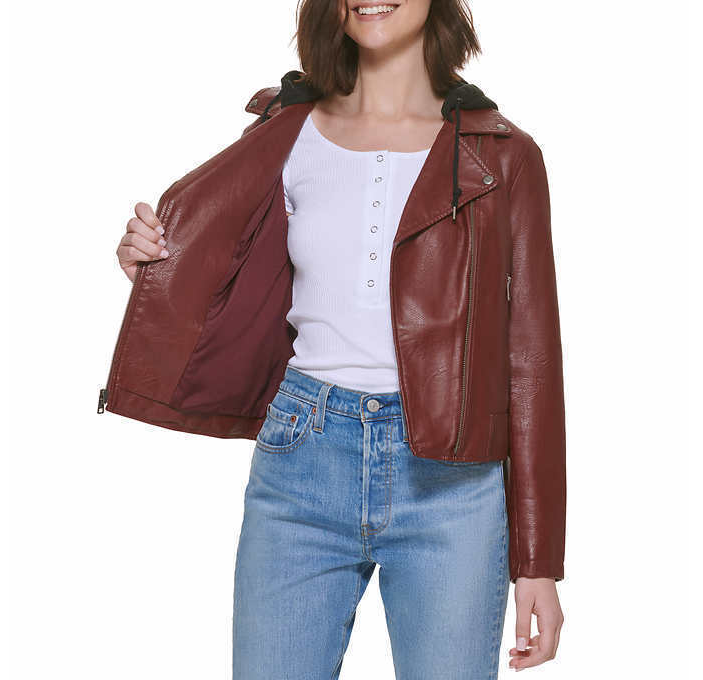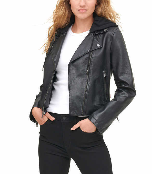 Levi's Faux Leather Hooded Midweight Motorcycle Jacket Black Small