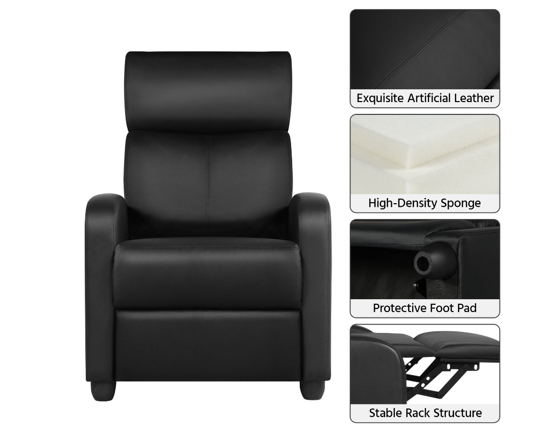 • Protective feet: This single recliner chair sits on four sturdy feet equipped with non-marking pads, which efficiently protects both the sofa and the hard (wood) floor while moving.