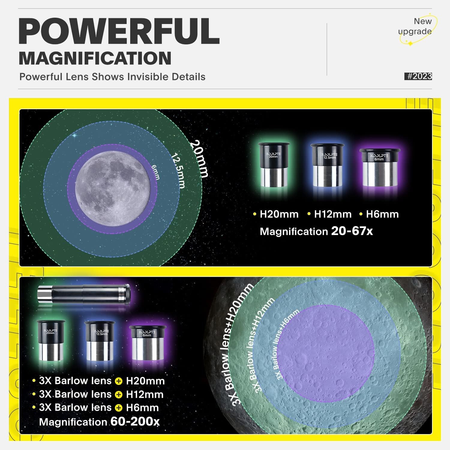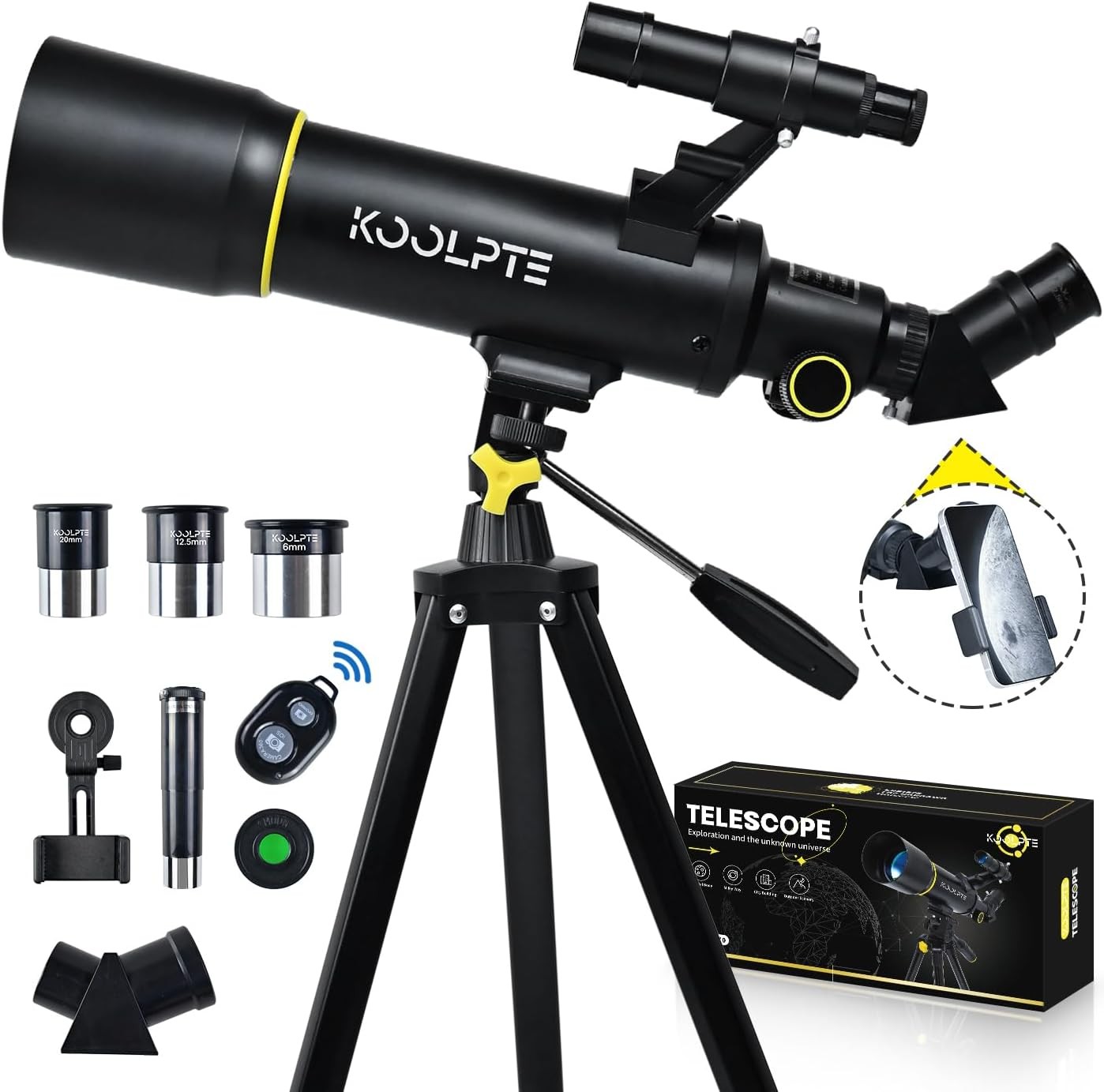 • 20X-200X Magnification: The telescope equipped with 3 eyepieces(K6mm, K10mm, K25mm) and a 3X Barlow lens that can triple the magnifying power of each eyepiece. The telescope meets all the needs of astronomy beginners and is the best helper for children, adults and beginners in astronomy.